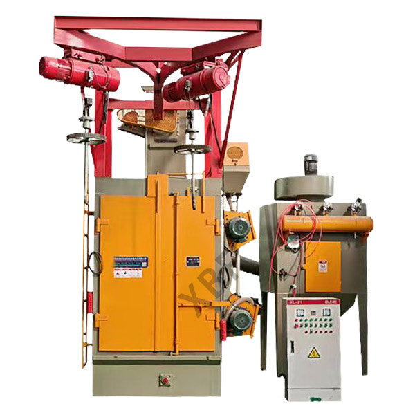 鑫百发吊勾式抛砂机由单双吊钩承载工件进入清理室进行抛及清理,型号根据产品尺寸大小效率来定,室体采用全封面结构,