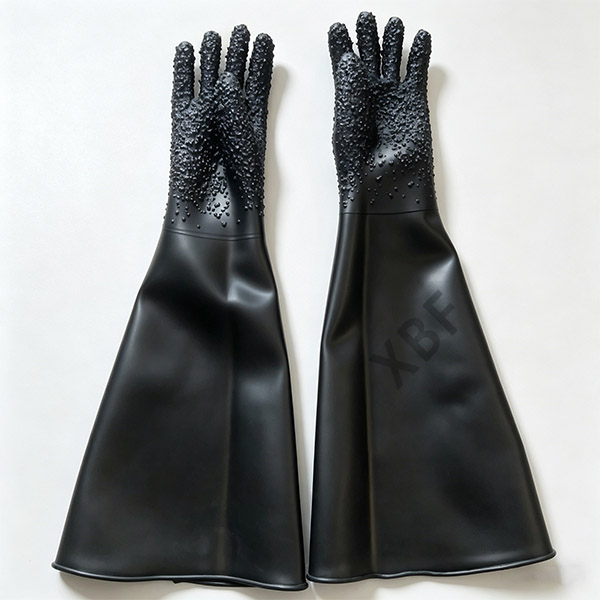 鑫百发喷砂手套是采用高耐磨橡胶经特殊的生产工艺制成,加长加厚,耐磨、耐高压,可以有效保护工作人员劳动操作时对手